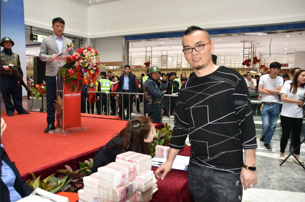 玉博城商户代表一品堂董事长曹兴华致辞,,,,,,,,谢谢大客商光临,,,,,,,,谢谢玉博城平台,,,,,,,,玉博城8000家玉器厂商将配合打造全球翡翠制品的采购源头市场。。。。。。